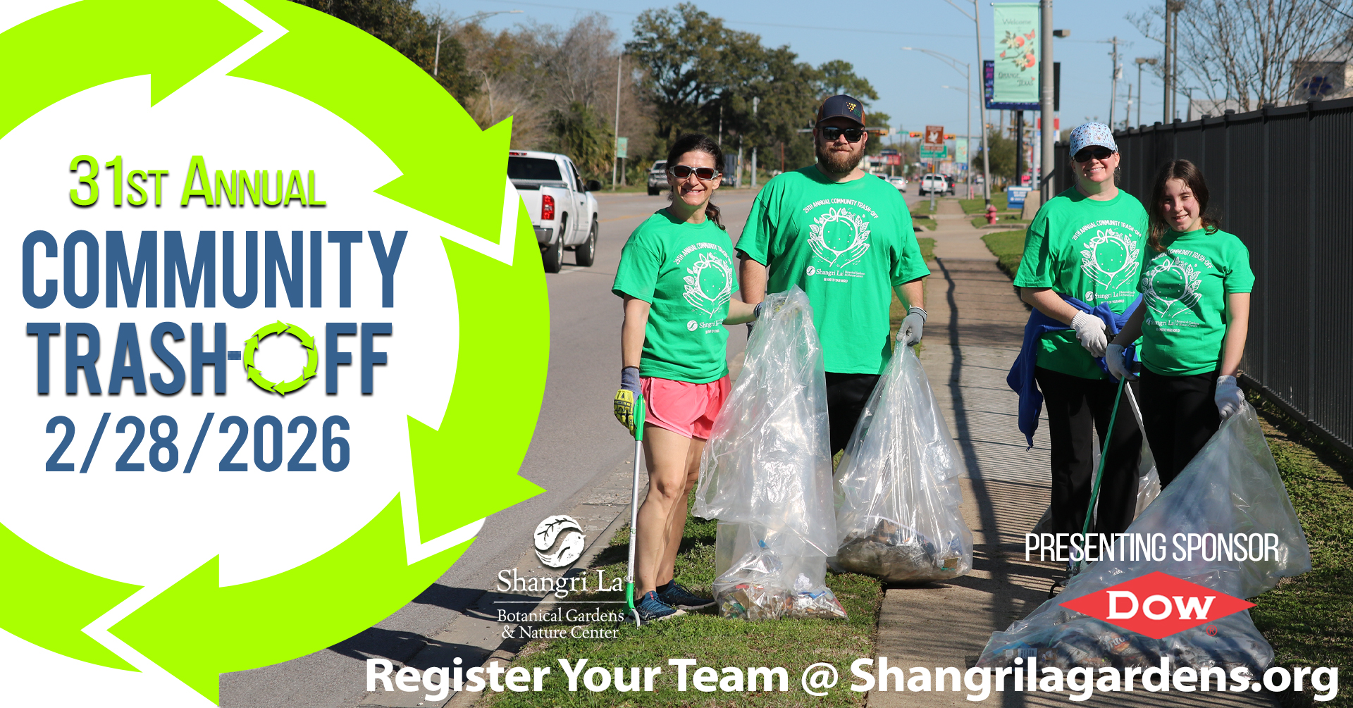 The 31st Annual Community Trash Off for Orange, Texas and surrounding communities will take place Saturday, February 28, 2026, from 8:00 a.m. to 12:00 p.m. at the City of Orange Riverside Pavilion, located at 709 Simmons Drive in Orange, Texas. The Community Trash Off is organized by the staff of Shangri La Botanical Gardens and Nature Center and conducted by volunteers from Orange, West Orange, Pinehurst and other surrounding communities. The rain date for this event is March 14, 2026.
