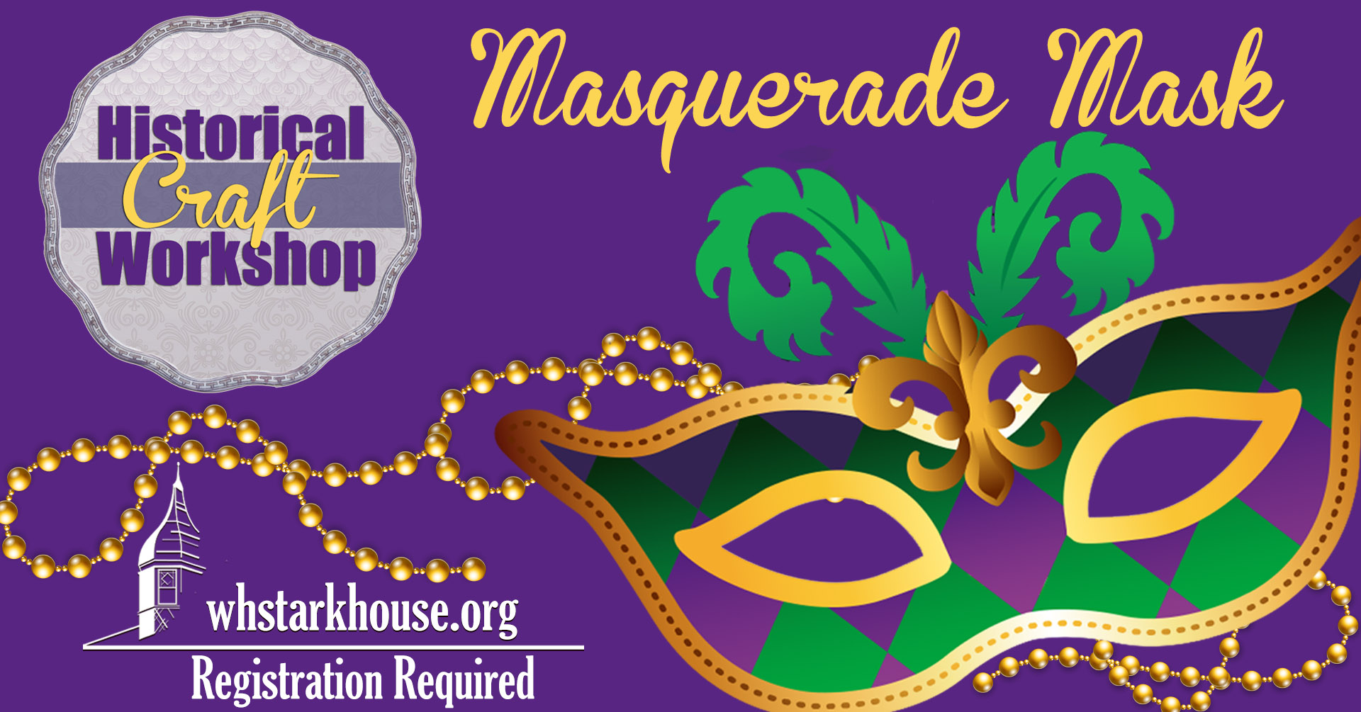 Join us for this Historical Craft Workshop: Masquerade Mask on February 6 from 6-8 p.m. Guests will enjoy a brief history lesson of masquerade balls and then make a Mardi Gras themed masquerade mask to take home.